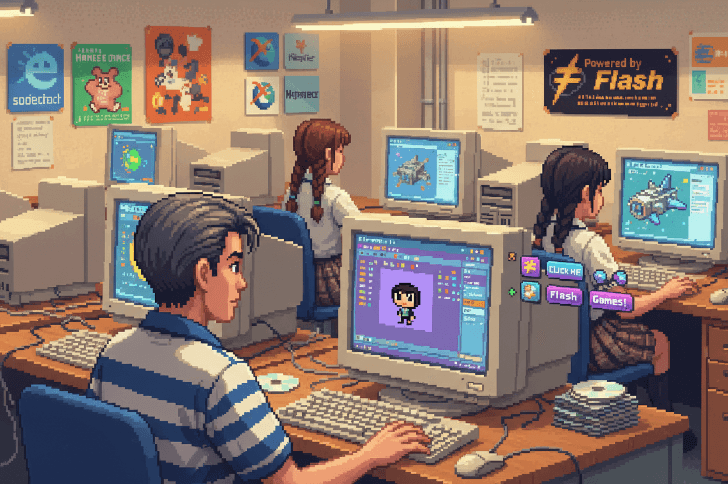 那时候记得大家都比较喜欢学网页三剑客,还有一些 Flash。我也用 Flash 做了一点点东西。