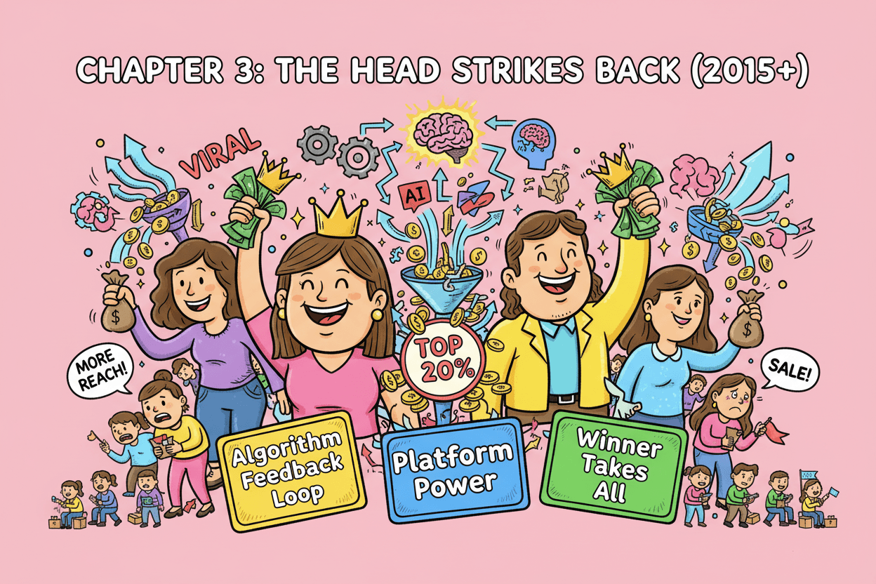 其三,平台为王:那些使能长尾的平台本身成为巨头,掌控着流量分配大权。它们更倾向于推广能带来高收益的热门产品。